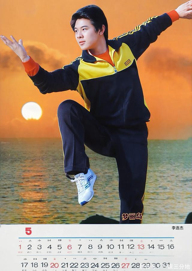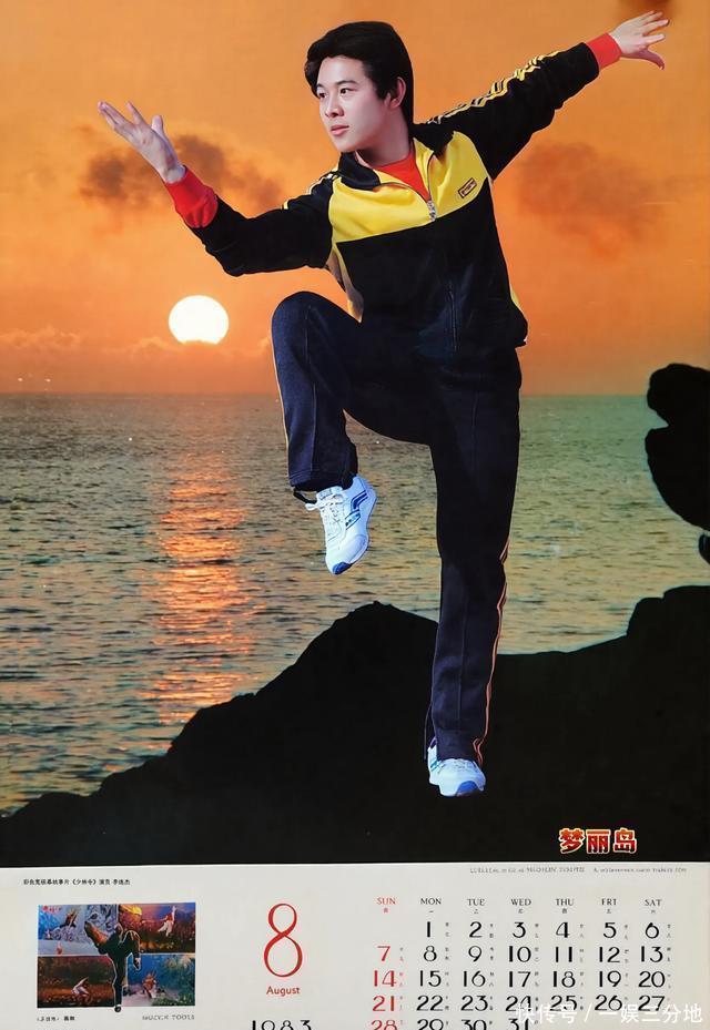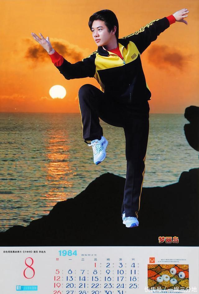 1984年明星挂历8月份—李连杰 彩色宽银幕故事片《少林寺》演员李连杰