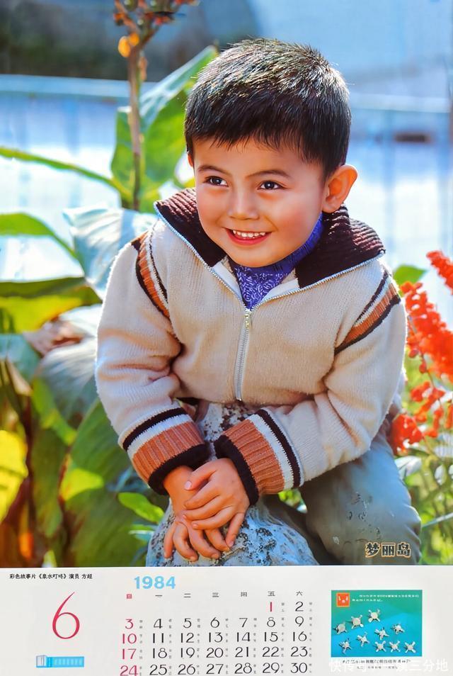 1984年明星挂历6月份—方超 彩色故事片《泉水叮咚》演员方超
